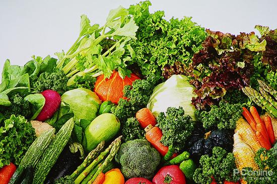 同时通过智能算法识别出画面中的不同对象,并对画面中不同对象的色彩进行独立的优化和提升。如下图所示,真彩还原可以识别出画面中红色的西红柿、绿色的蔬菜以及橙色的南瓜,虽然三种物体在色彩上表现不一,但X-VUE画质引擎可以对这三种不同的物体进行不同的调色。从而让每一个物体的颜色更趋近于实物色彩,同时又不会影响到其他物体的色彩。