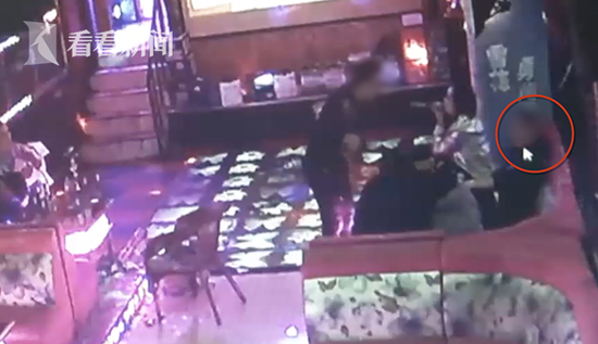 被害人一开始没有理睬,紧接着嫌疑人先是用手指指着被害人,然后又指向歌厅门口的方向。随后,两名被害人跟着嫌疑人走出了歌厅。